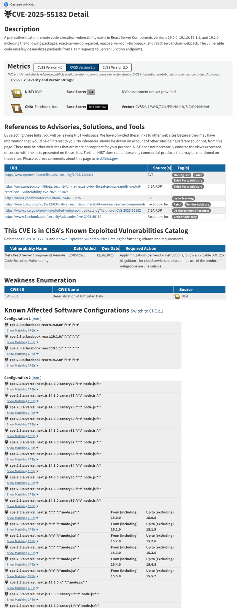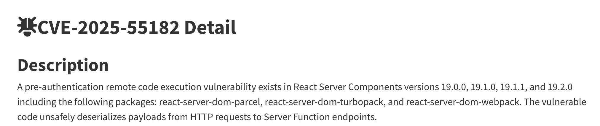最上面:CVE-2025-55182 Detail