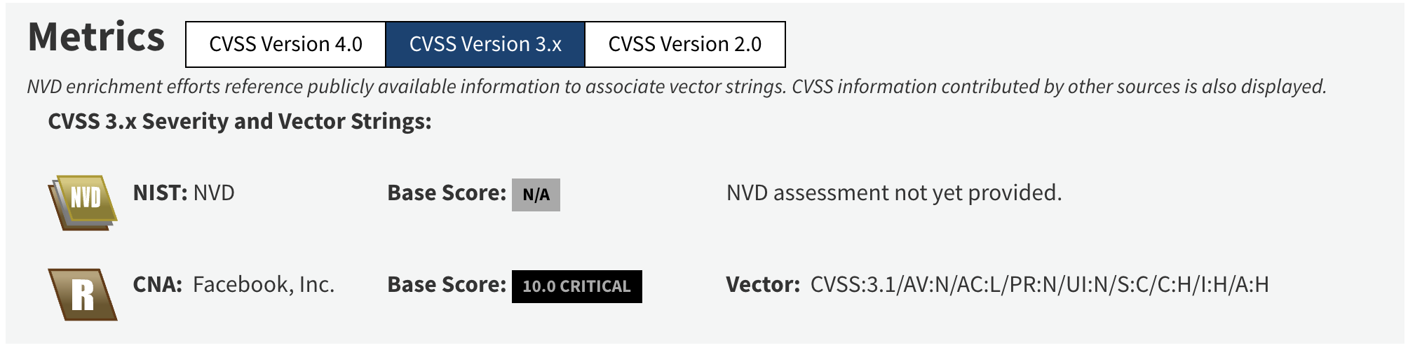 3) Metrics / CVSS 分頁:看嚴重度分數與誰給的