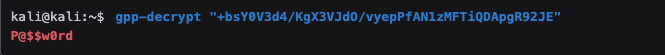 kali@kali:~$ gpp-decrypt "+bsY0V3d4/KgX3VJdO/vyepPfAN1zMFTiQDApgR92JE"